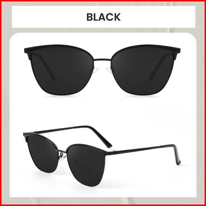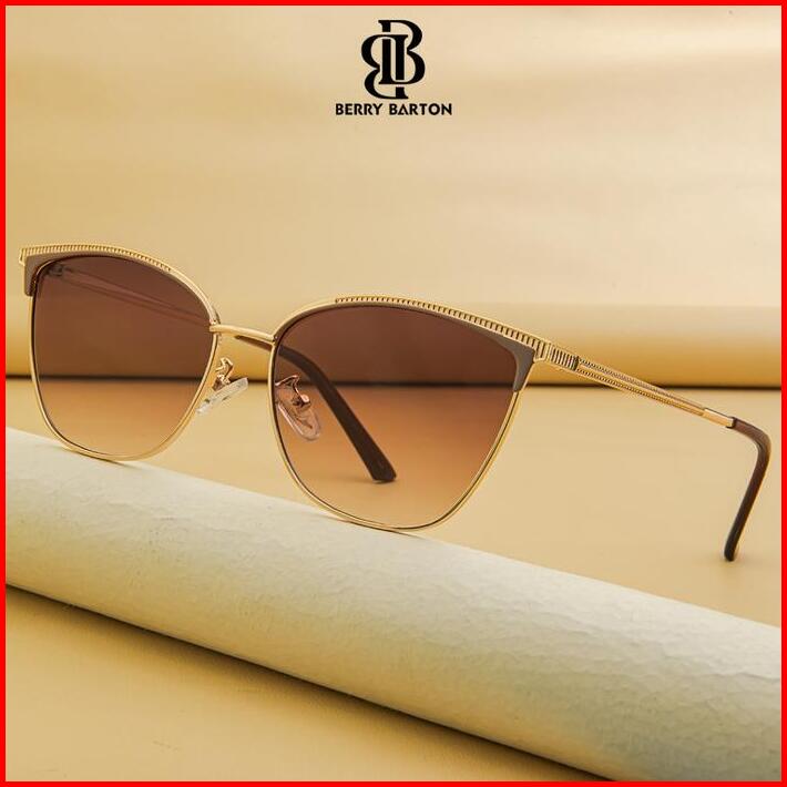 Berrybarton Kacamata Hitam Anti Uv400 Sunglasses Outdoor Kacamata Semi Cat Eye Metal Wanita 80-689