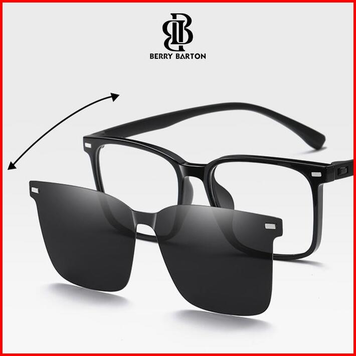 Kacamata Clip On Polarized Kotak Lensa Anti Radiasi Berrybarton 9010