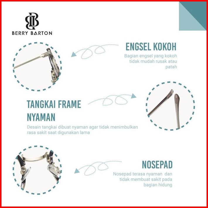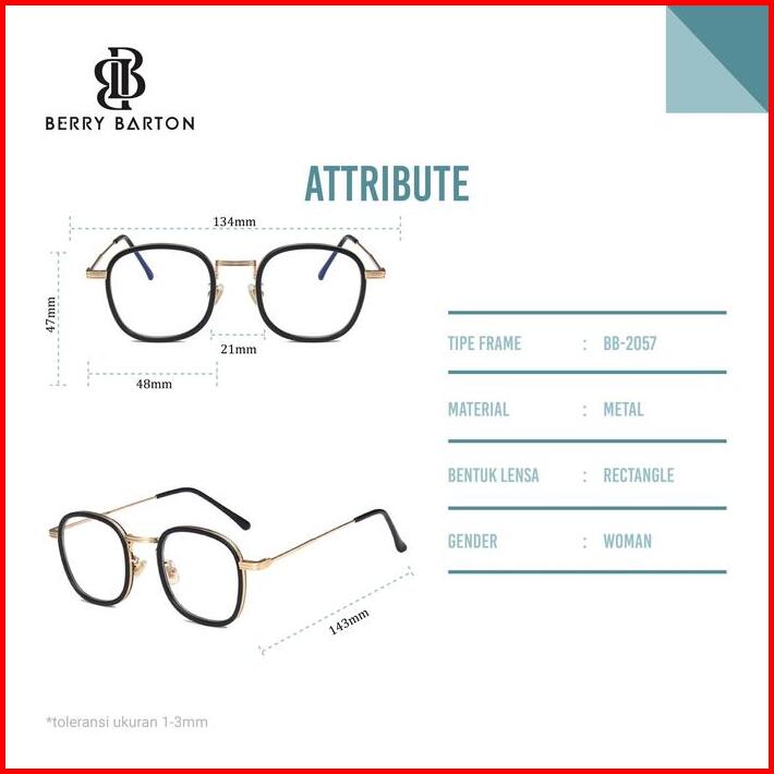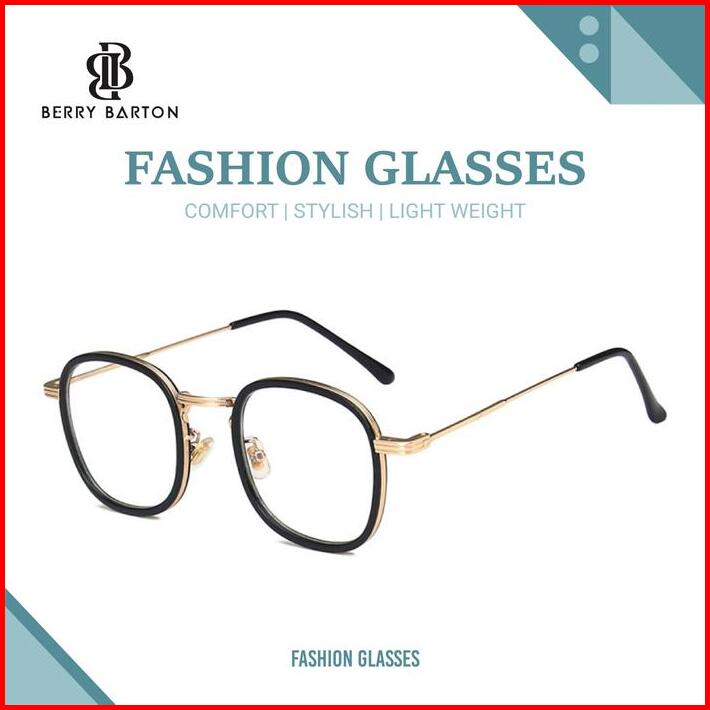 Berrybarton Kacamata Minus Frame Rectangle Metal Anti Radiasi Blueray 2057 Dengan Lensa Anti Blueray 1.56 Untuk Perlindu