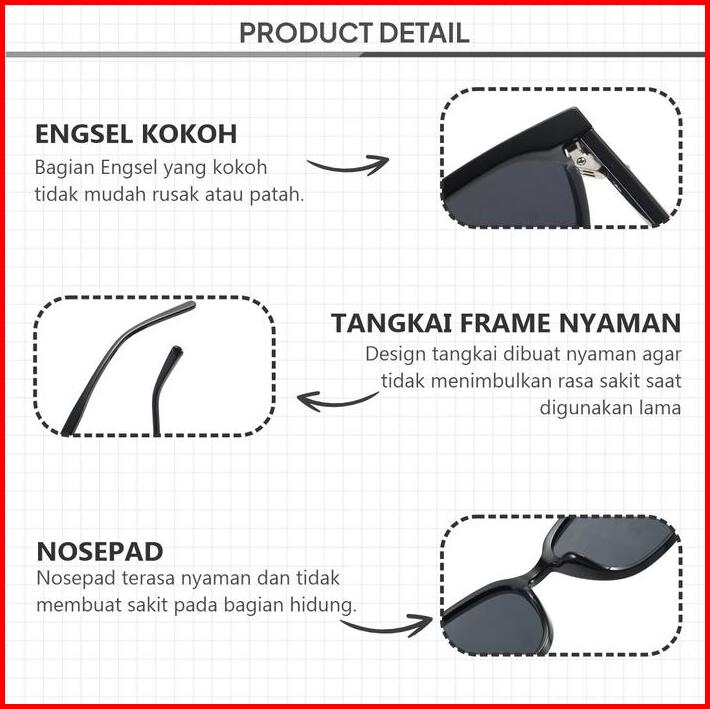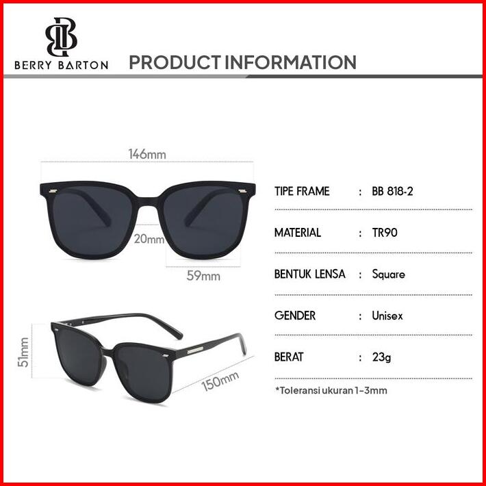 Kacamata Hitam Kotak Sunglasses Frame Square Tr Lensa Anti Uv 400 Berrybarton 818-2