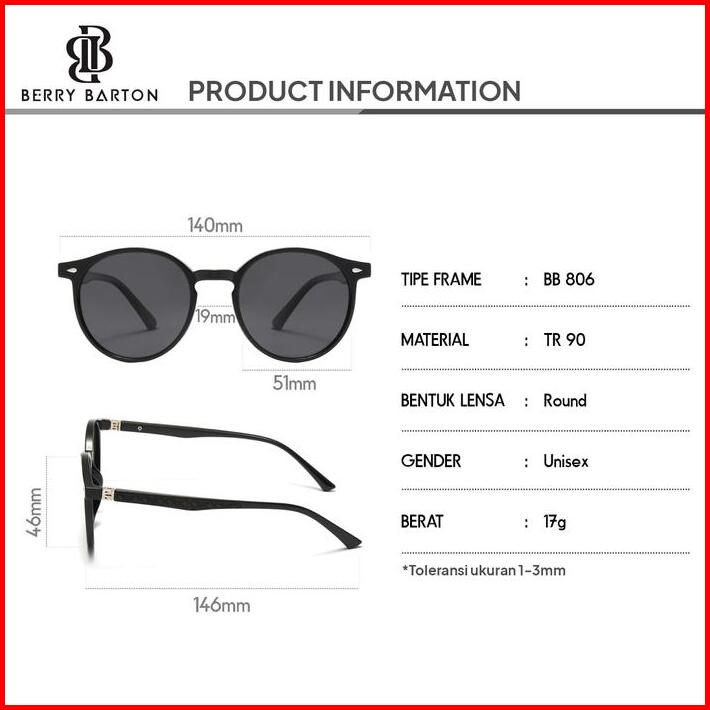 Kacamata Hitam Bulat Ringan Tr Sunglasses Antiuv Bisa Minus 806