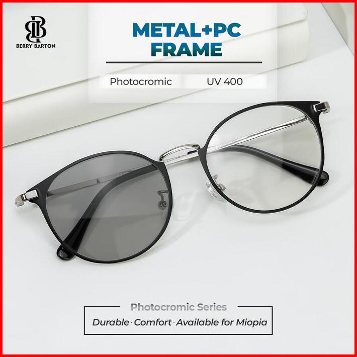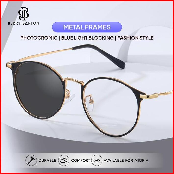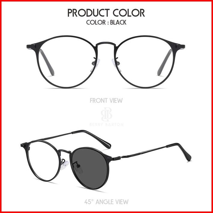 Kacamata Frame Bulat Lensa Photocromic Blueray Minus Pria Wanita 9813