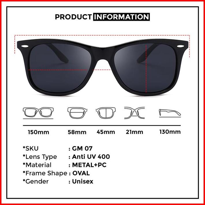 Kacamata Hitam Pria Wayfarer Frame Metal Lensa Anti Uv Berrybarton 07