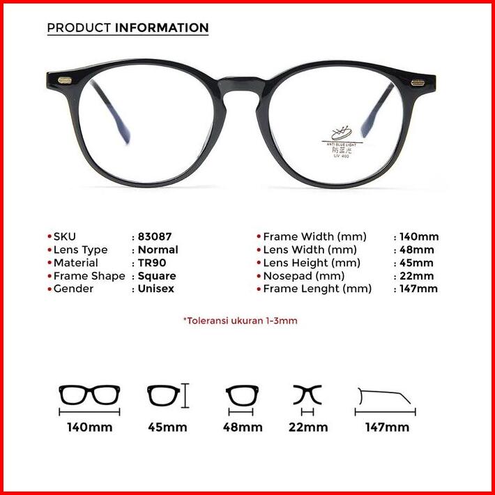 Kacamata Anti Radiasi Frame Kotak Bahan Plastik Tr90 Berrybarton 83087