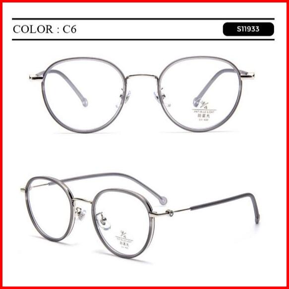 Berrybarton Kacamata Bulat Anti Radiasi Photocromic Blueray Kacamata Minus Plastik Metal Pria Wanita 11933