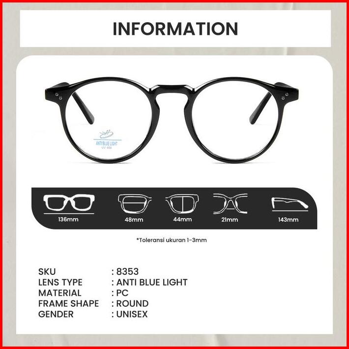 Berrybarton Kacamata Anti Radiasi Blueray Frame Bulat Bahan Tr Model Lensa Anti Sinar Biru Komputer 8353