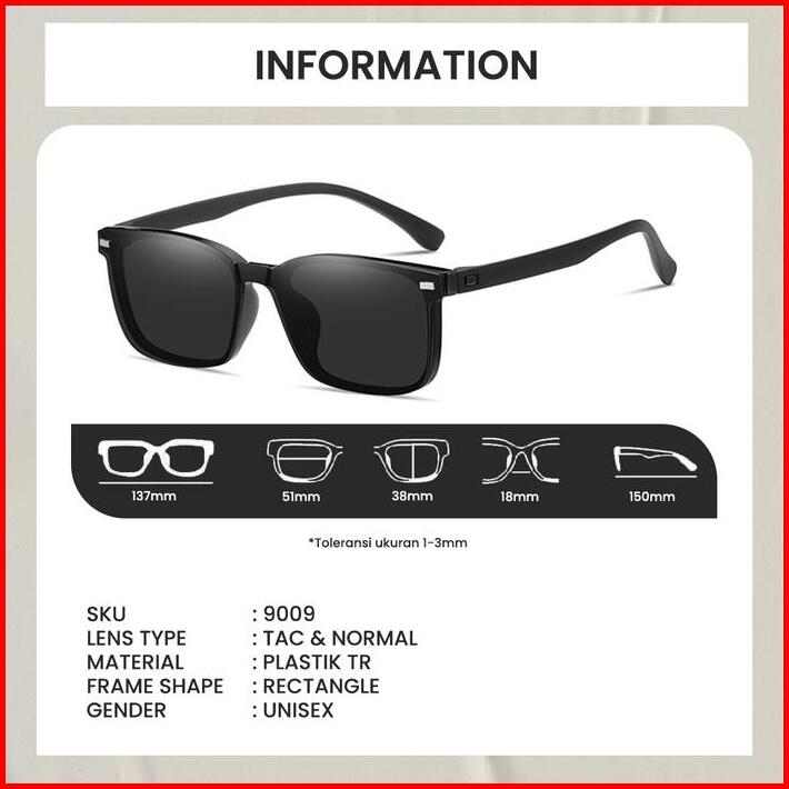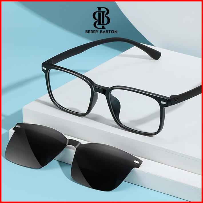 Kacamata Clip On Polarized Frame Kotak Lensa Radiasi Berrybarton 9009