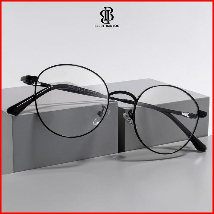 Kacamata Bulat Anti Radiasi Blueray Photocromic Minus Baca Frame Round Fashion Pria Wanita Berrybarton 23036