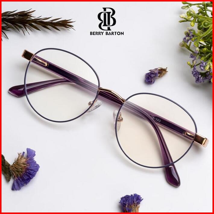 Kacamata Bulat Anti Radiasi Blueray Photocromic Minus Baca Frame Metal Fashion Wanita Berrybarton 2308