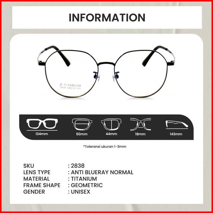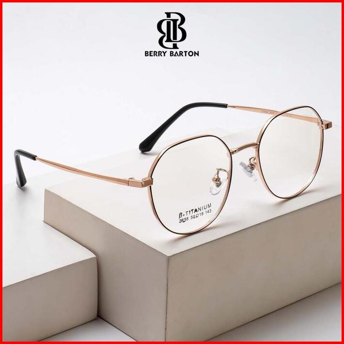 Berrybarton Kacamata Anti Radiasi Blueray Photocromic Minus Baca Frame Titanium Fashion Pria Wanita Model 2838 Bentuk Ge