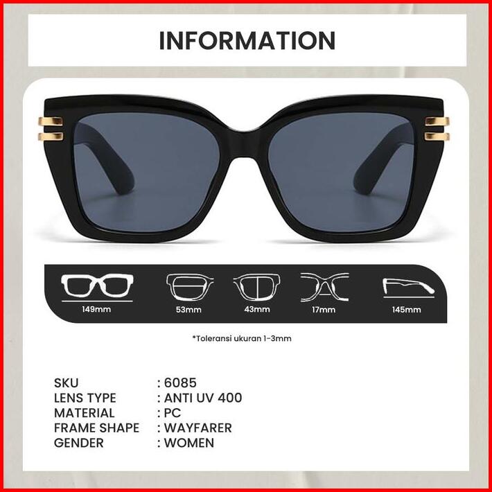 Kacamata Hitam Model Cat Eye Sunglasses Wayfarer Butterfly Anti Lensa Uv400 Fashion Wanita Berrybarton 6085