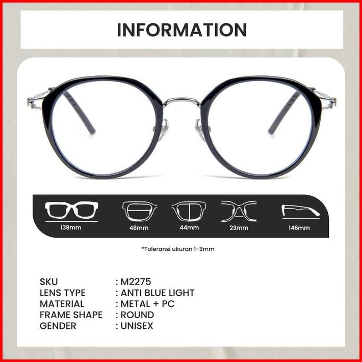 Kacamata Anti Radiasi Bluechromic Fashion Pria Wanita Frame Bulat Berrybarton M2275