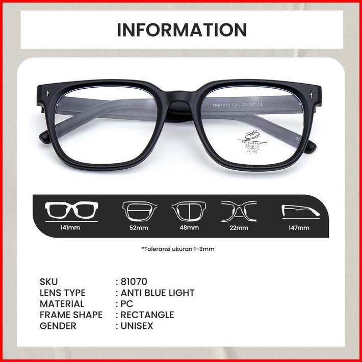 Kacamata Kotak Anti Radiasi Blueray Photocromic Frame Rectangle Berrybarton 81070