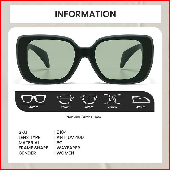 Berrybarton Sunglasses Square Fashion Wanita Model Oversize Anti Uv400 6104