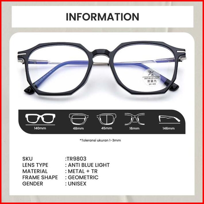 Kacamata Anti Radiasi Blueray Frame Geometric Minus Photocromic Berrybarton Tr 9803