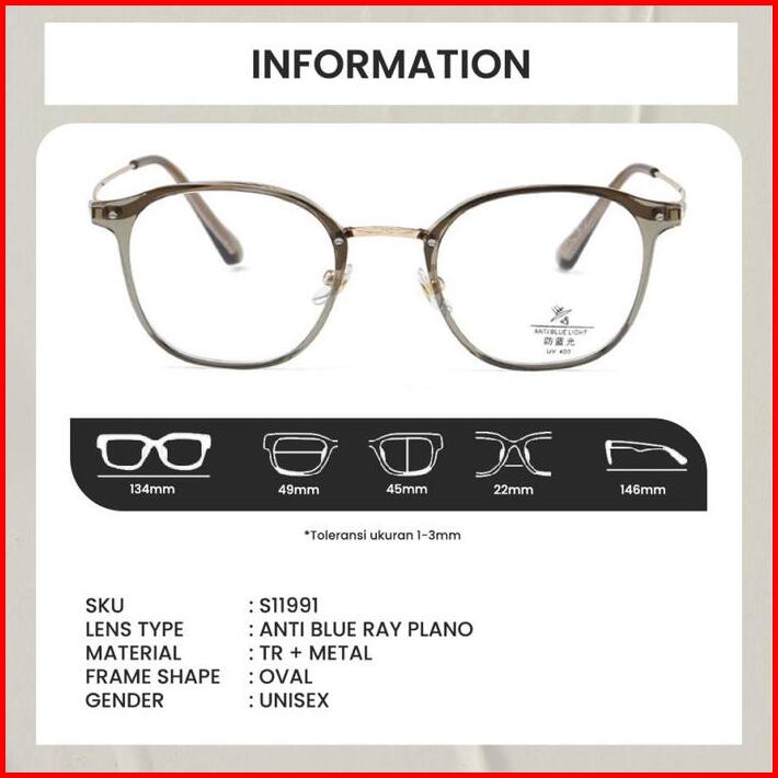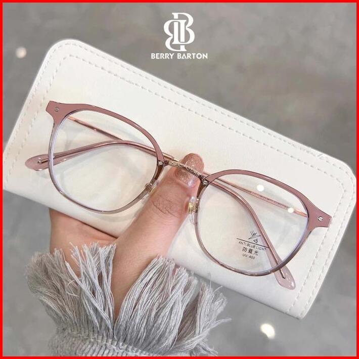 Kacamata Anti Radiasi Frame Oval Pria Wanita Lensa Minus Bluecromic Metal Berrybarton S11991