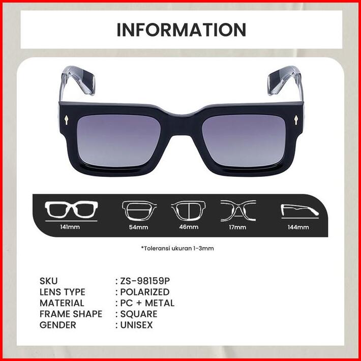 Kacamata Hitam Sunglasses Square Polarized Fashion Berrybarton Zs 98159p