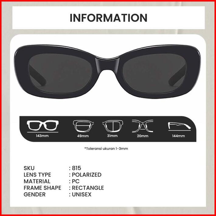 Kacamata Hitam Sunglasses Rectangle Polarized Fashion Berrybarton 815