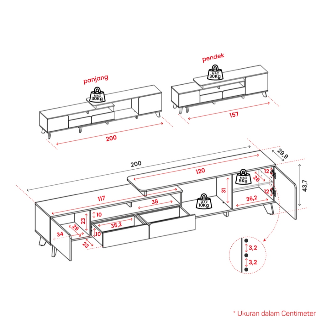 PIRA METROPOLIS OX - SAKURA TV200 Meja TV / Rak TV dapat dipanjangkan dengan fitur Extendable