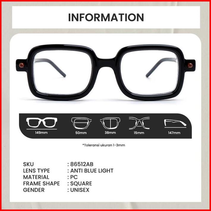 Kacamata Kotak Frame Bold Square Anti Radiasi Blueray Photocromic Pria Wanita Berrybarton 86512 Ab