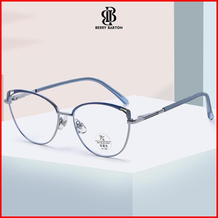 Kacamata Bluecromic Minus Anti Radiasi Blueray Photocromic Fashion Wanita Frame Cat Eye Metal Anti Silau Komputer F93025