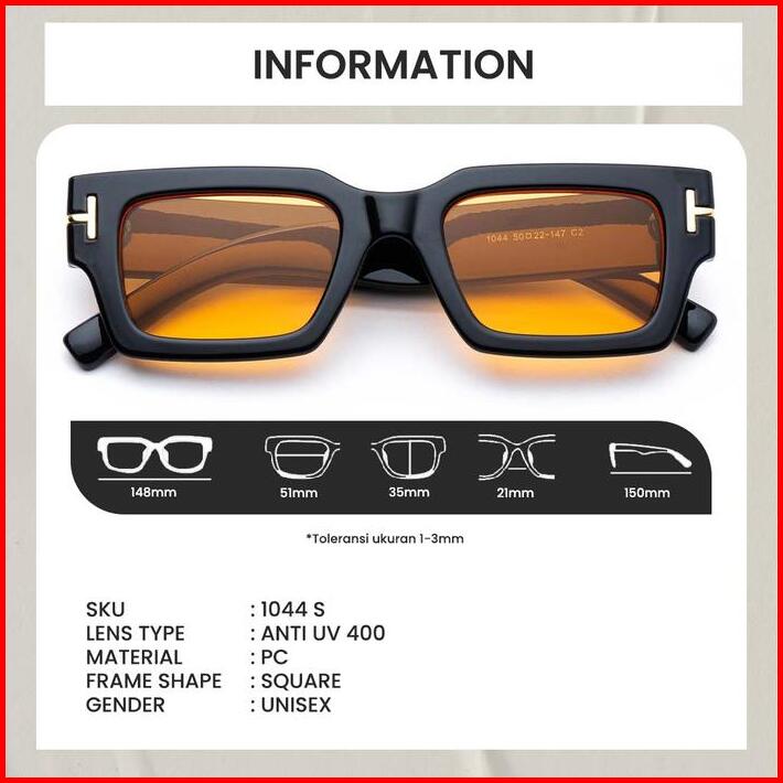 Kacamata Hitam Sunglasses Metal Kotak Anti Uv Berrybarton 1044 S
