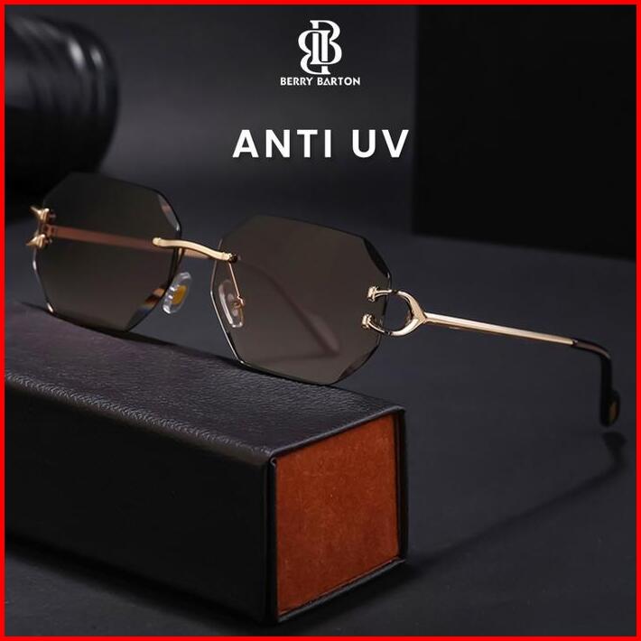 Berrybarton Kacamata Hitam Frameless Alloy Fashion Terbaru Sunglasses Anti Uv 400 Pria Dan Wanita Zx 5g34s