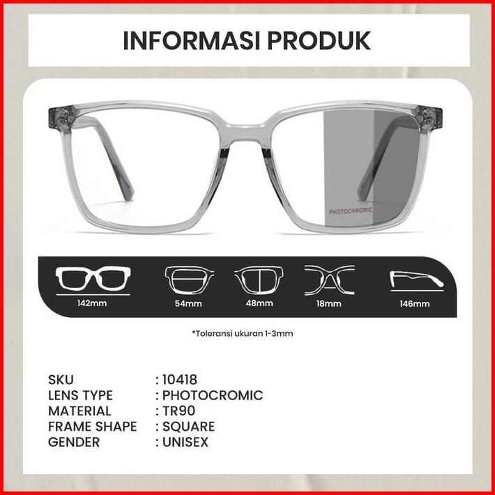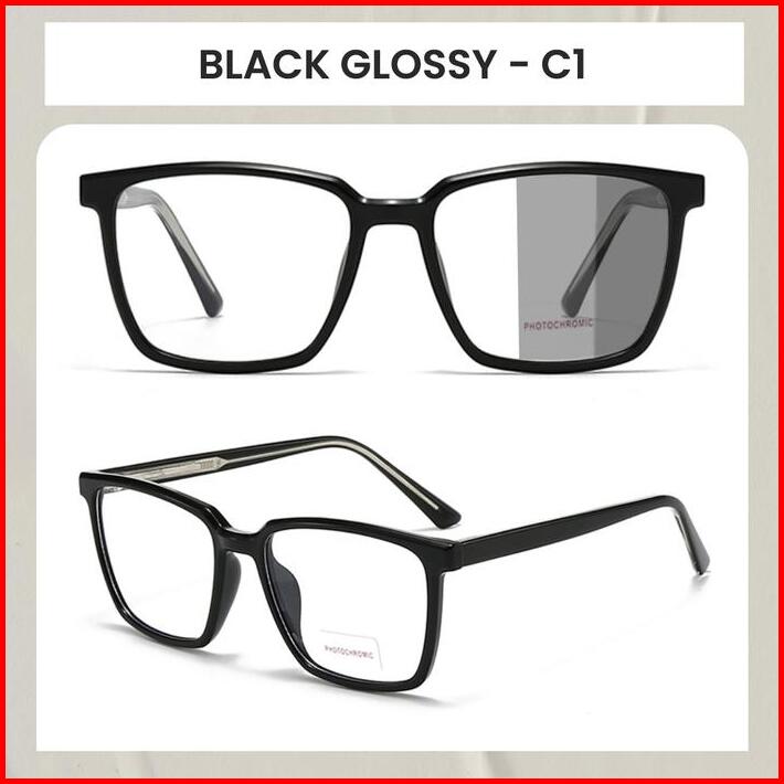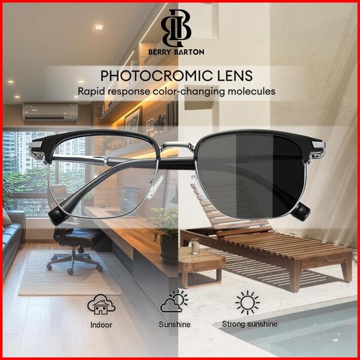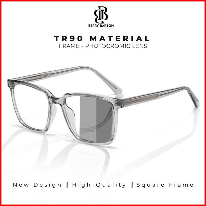 Berrybarton Kacamata Photocromic Frame Model Kotak Bahan Tr90 Lensa Anti Radiasi Sinar Matahari Berubah Warna Outdoor Un