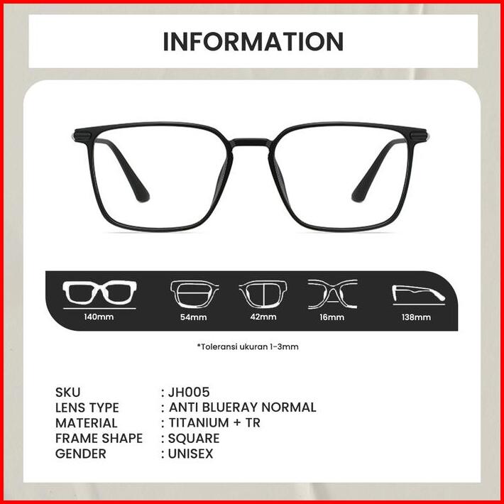 Berrybarton Kacamata Kotak Titanium Tr Lentur Lensa Minus Anti Radiasi Bluecromic Pria Wanita Jh005