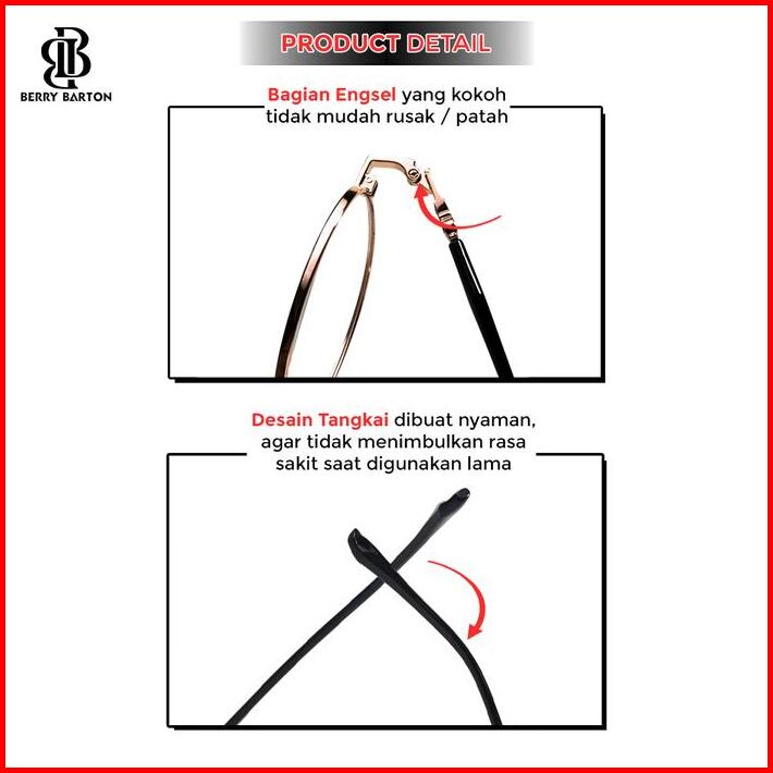 Kacamata Bulat Metal Lensa Anti Radiasi Bluecromic Berrybarton 65016