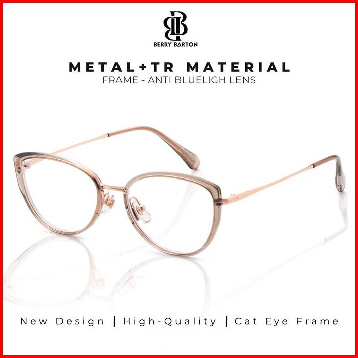 Berrybarton Kacamata Minus Cat Eye Metal Tr Anti Radiasi Blueray Photocromic Bluecromic Wanita S12013
