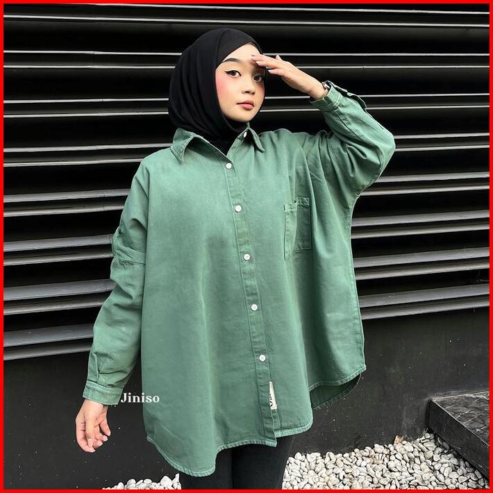 Jiniso Kemeja Oversize Shirt Olive Hyper Active