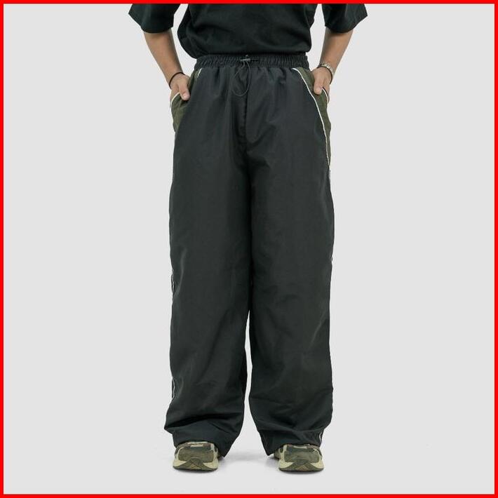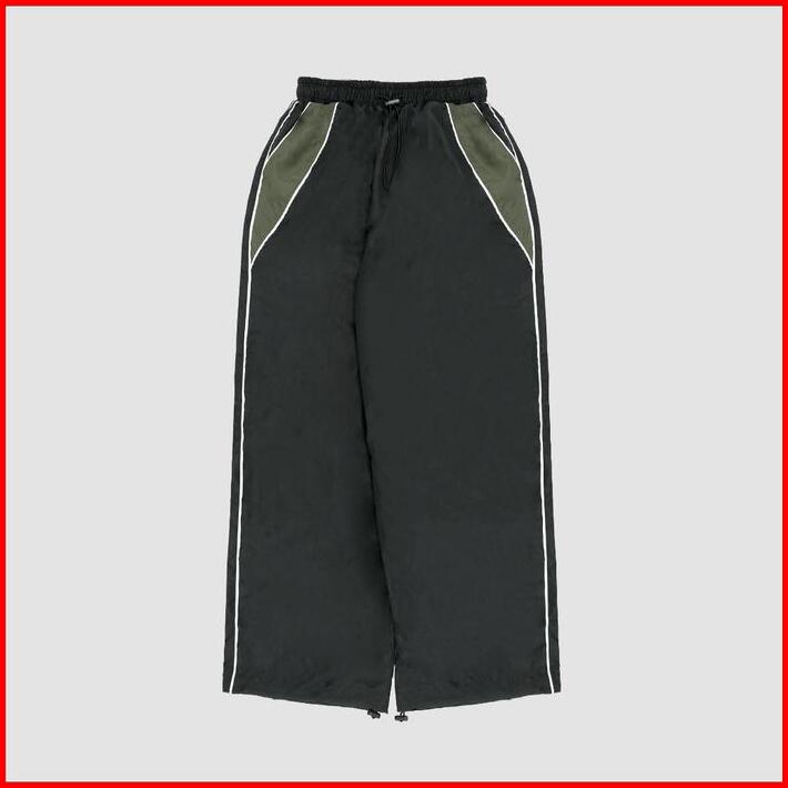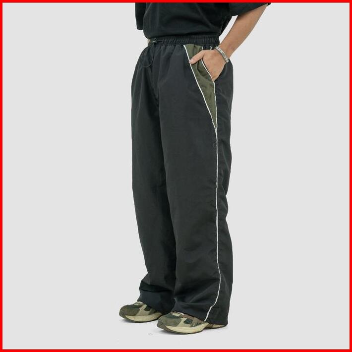 Fairgoods Celana Panjang Loose Fit White Nylon Stripe Merrel Black