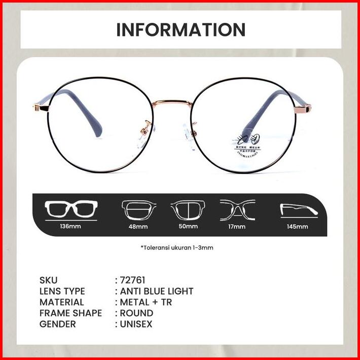 Kacamata Bulat Anti Radiasi Blueray Photocromic Minus Baca Frame Fashion Wanita Berrybarton 72761