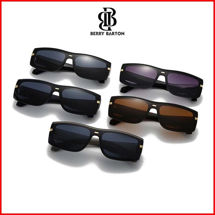 Berrybarton Kacamata Hitam Sunglasses Pria Model Kotak Rectangle Outdoor Anti Uv Matahari Berkendara Motor Fashion Luar