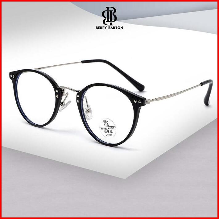 Kacamata Bulat Anti Radiasi Pria Wanita Lensa Minus Bluecromic Metal Berrybarton S11972