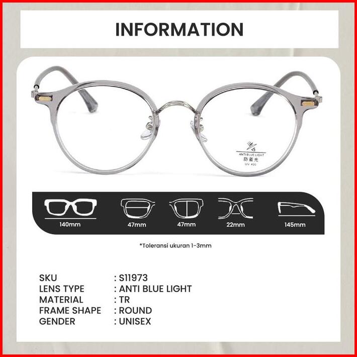 Kacamata Bulat Anti Radiasi Pria Wanita Lensa Minus Bluecromic Tr Berrybarton S11973