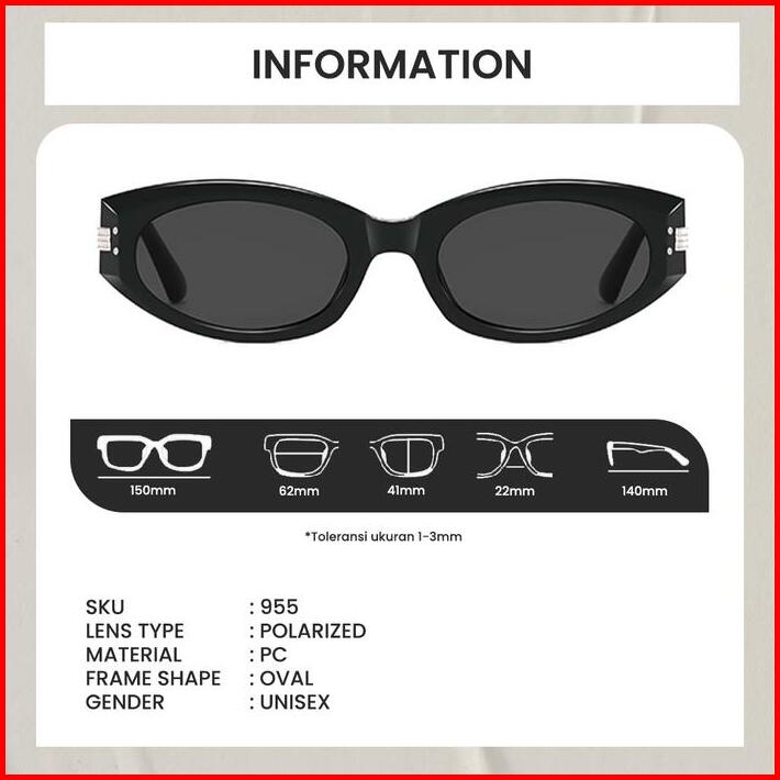 Kacamata Hitam Sunglasses Oval Polarized Fashion Berrybarton 955