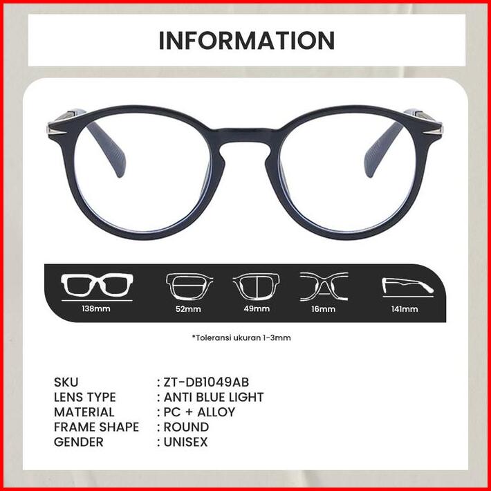 Kacamata Anti Radiasi Blueray Photocromic Frame Bulat Berrybarton Zs Db1049ab