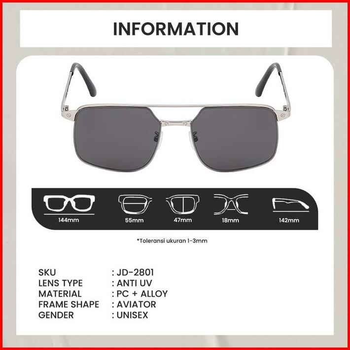 Kacamata Hitam Frame Pilot Sunglasses Aviator Lensa Anti Uv Fashion Pria Berrybarton Jd2801