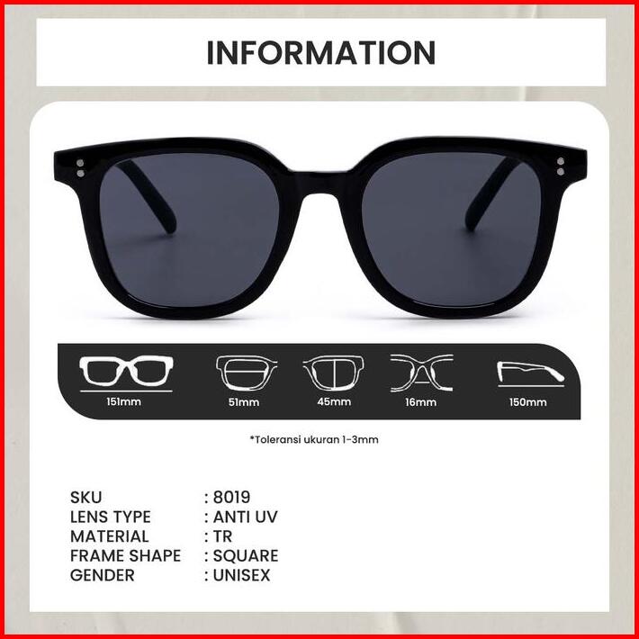 Kacamata Hitam Pria Wanita Sunglasses Men Women Fashion Skena Lensa Anti Uv Model Kotak Berrybarton 8019