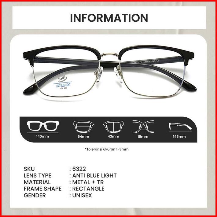 Kacamata Anti Radiasi Frame Vintage Metal Fashion Bisnis Berrybarton 6322