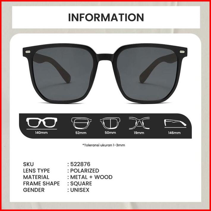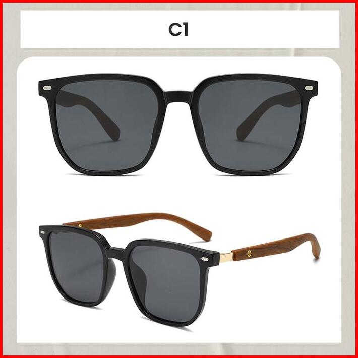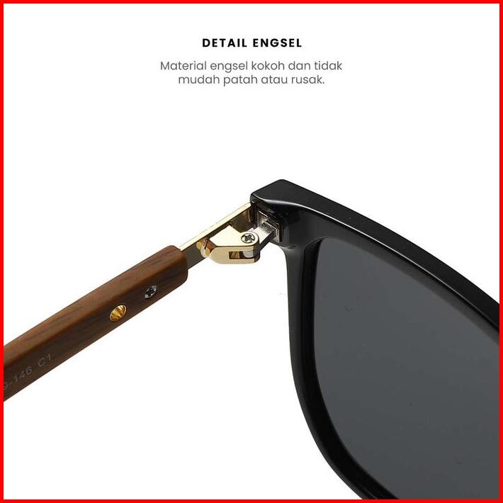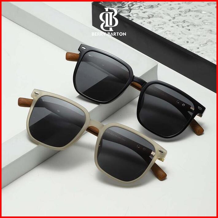 Kacamata Hitam Sunglasses Kotak Polarized Metal Wood Gagang Kayu Berrybarton 522876