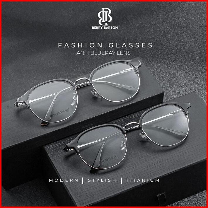 Kacamata Anti Radiasi Frame Bisnis Vintage Round Blueray Photocromic Berrybarton 39918