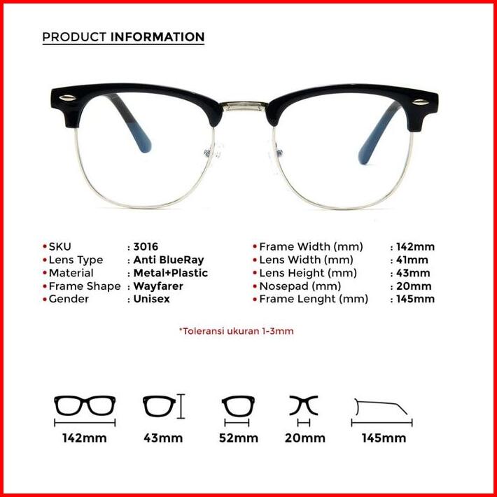 Berrybarton Kacamata Kotakanti Blueray Metal Pria Wainita 3016