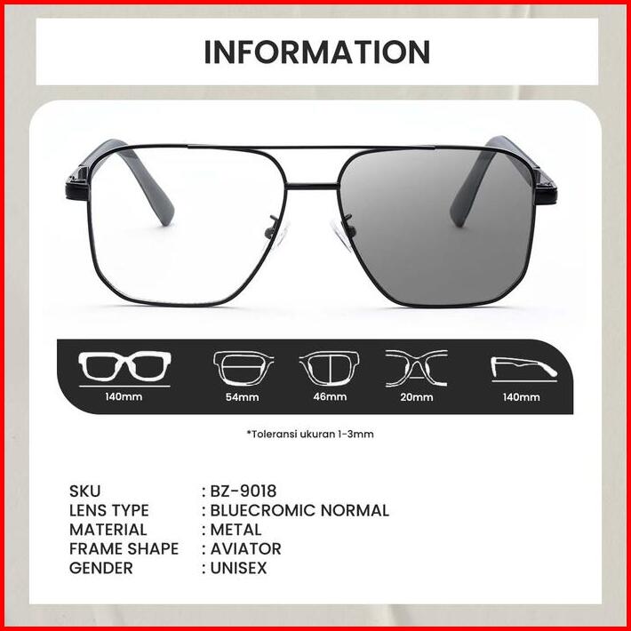 Kacamata Bluecromic Frame Aviator Model Pilot Metal Fashion Pria Wanita Anti Radiasi Berrybarton Bz9018