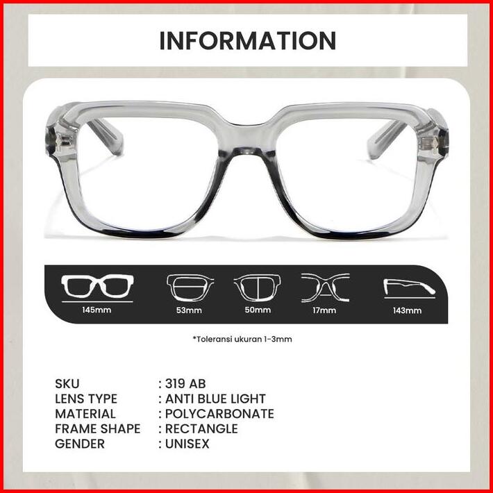 Kacamata Kotak Model Skena Frame Bold Fashion Pria Wanita Trendy Style Anak Konser Band Lensa Bluecromic Berrybarton 319