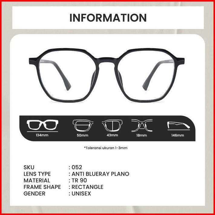 Kacamata Anti Radiasi Pria Wanita Frame Kotak Bahan Tr Berrybarton 052