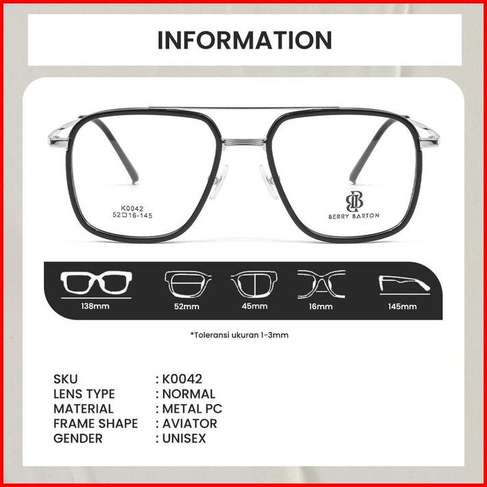 Kacamata Anti Radiasi Aviator Metal Pc Berrybarton K0042
