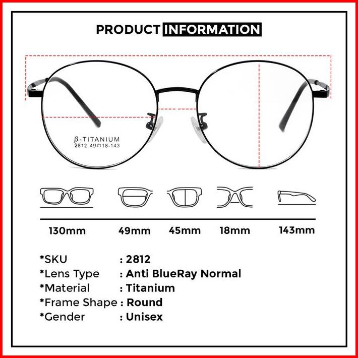 Kacamata Bulat Bahan Titanium Fashion Modis Korean Anime Skena Pria Wanita Lensa Minus Anti Radiasi Blueray Photocromic
